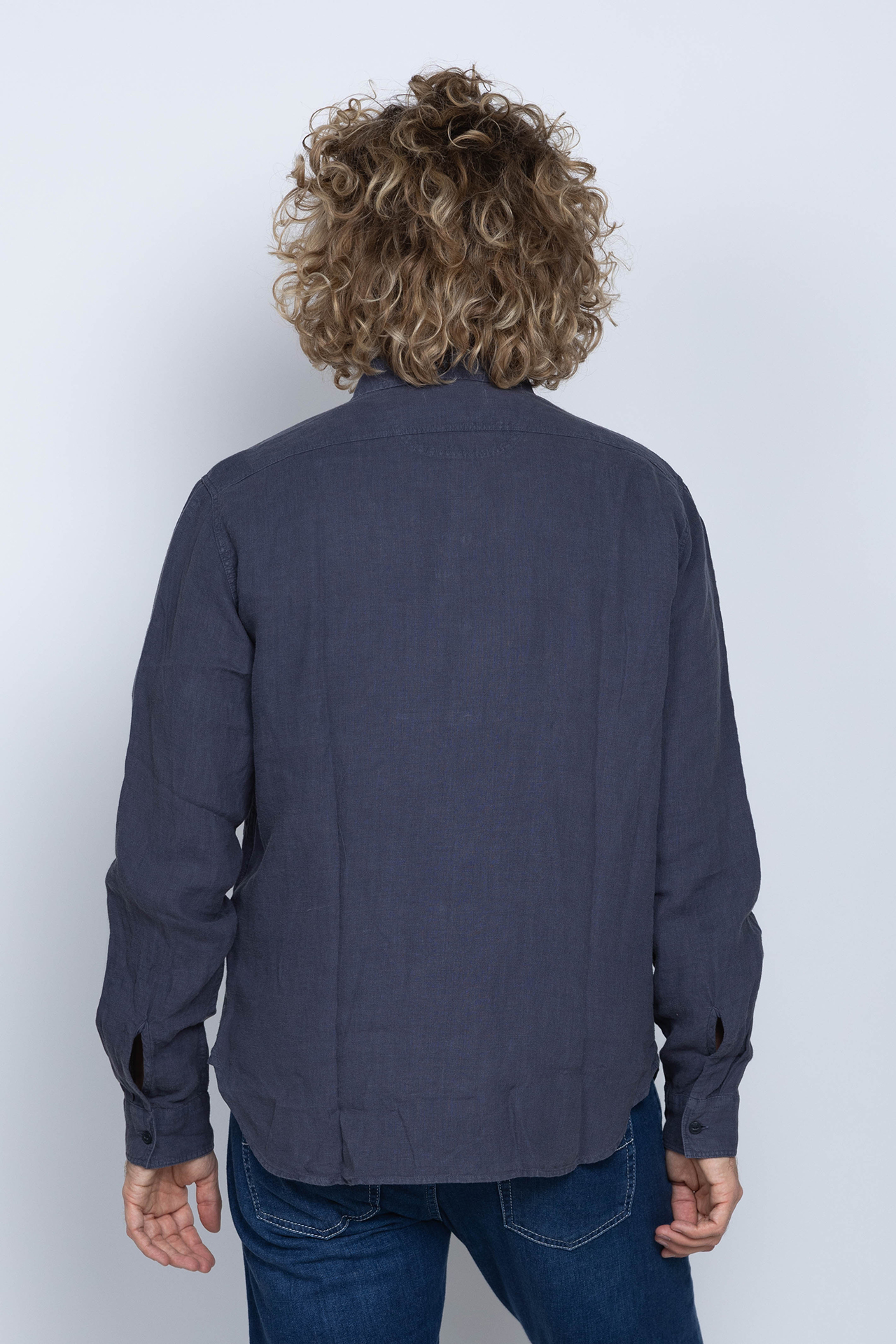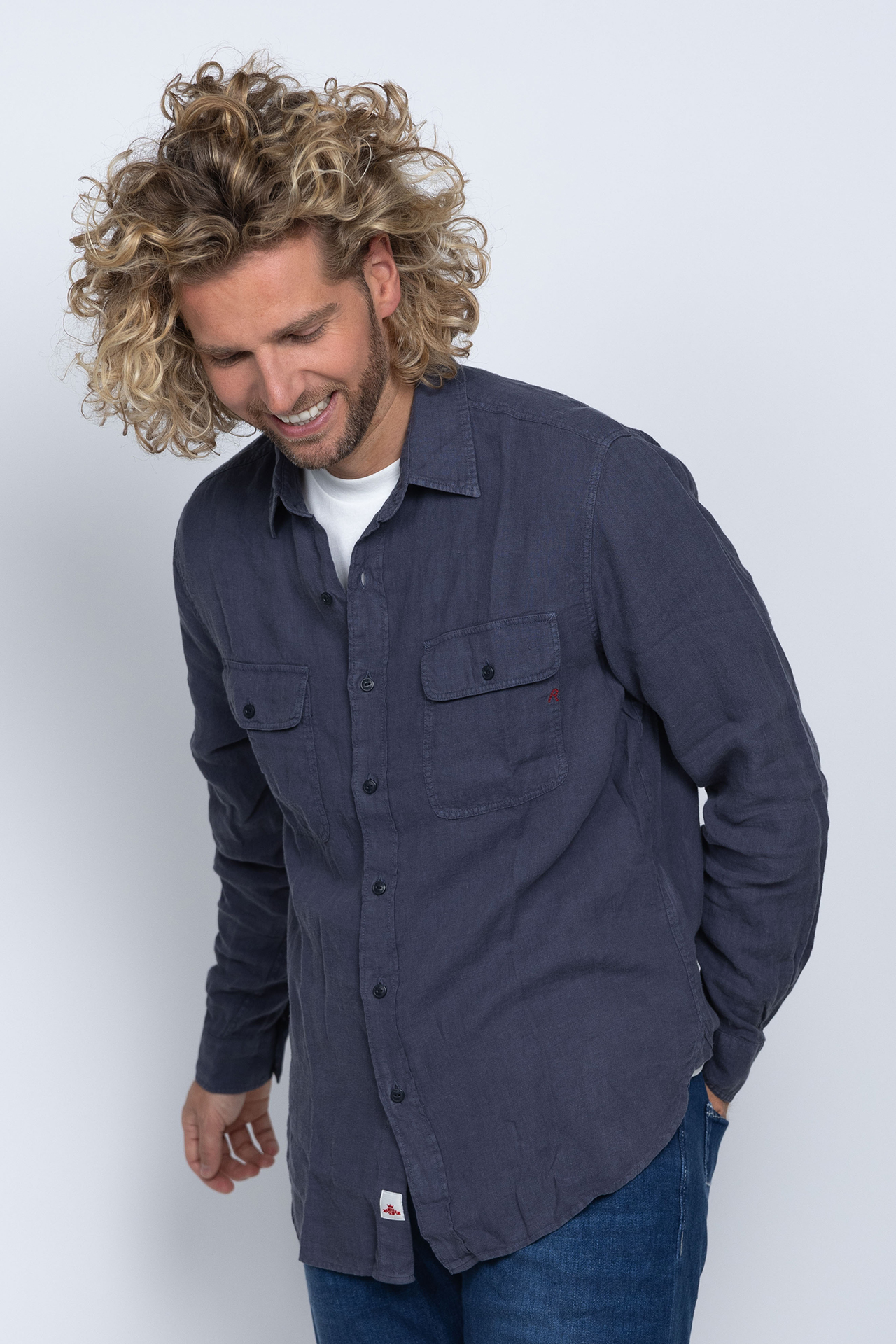 Linnen shirt met knopen, lange mouwen en klepzakken op de borst