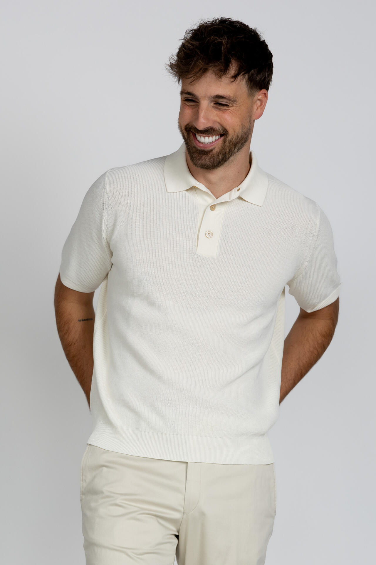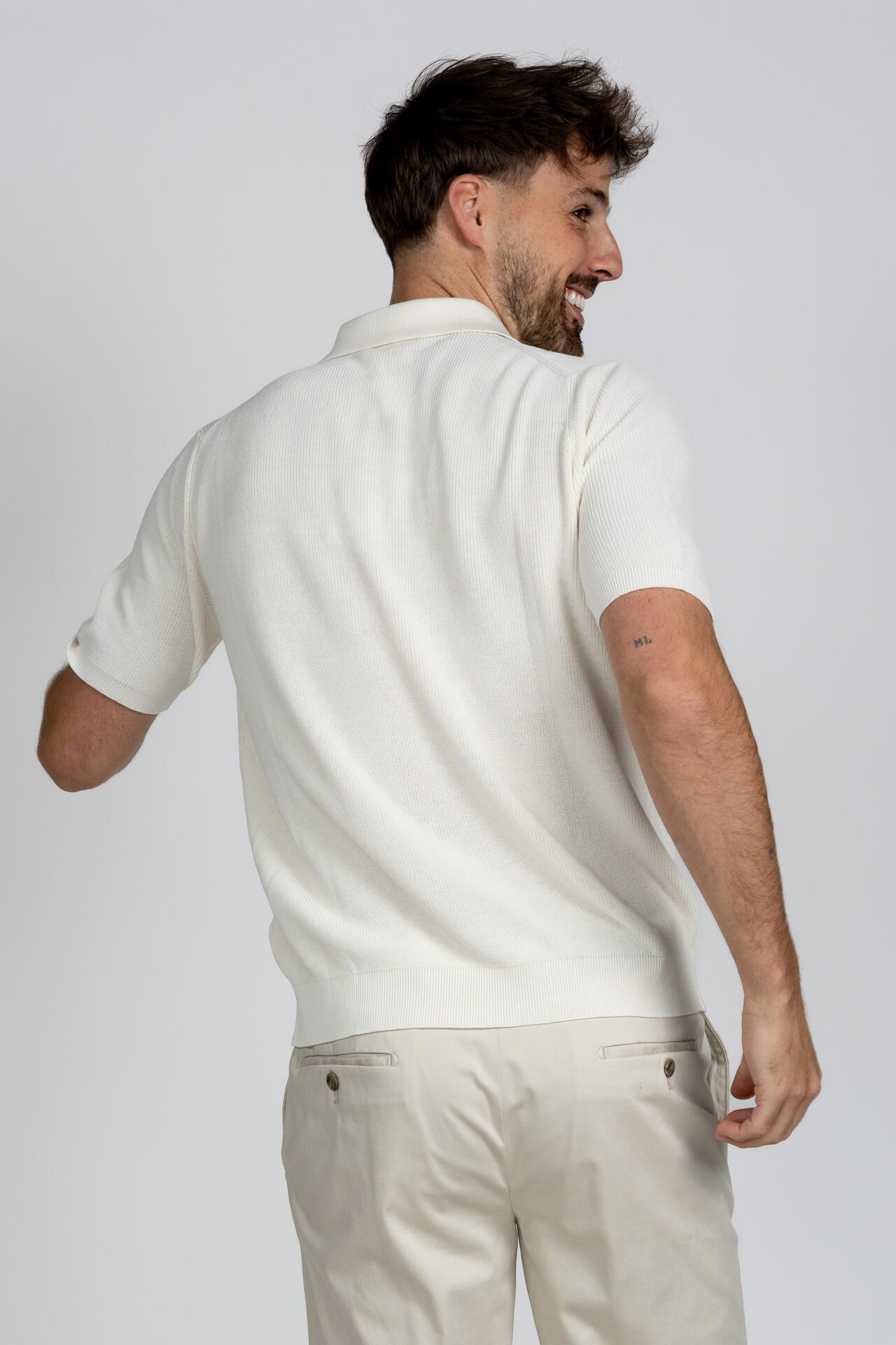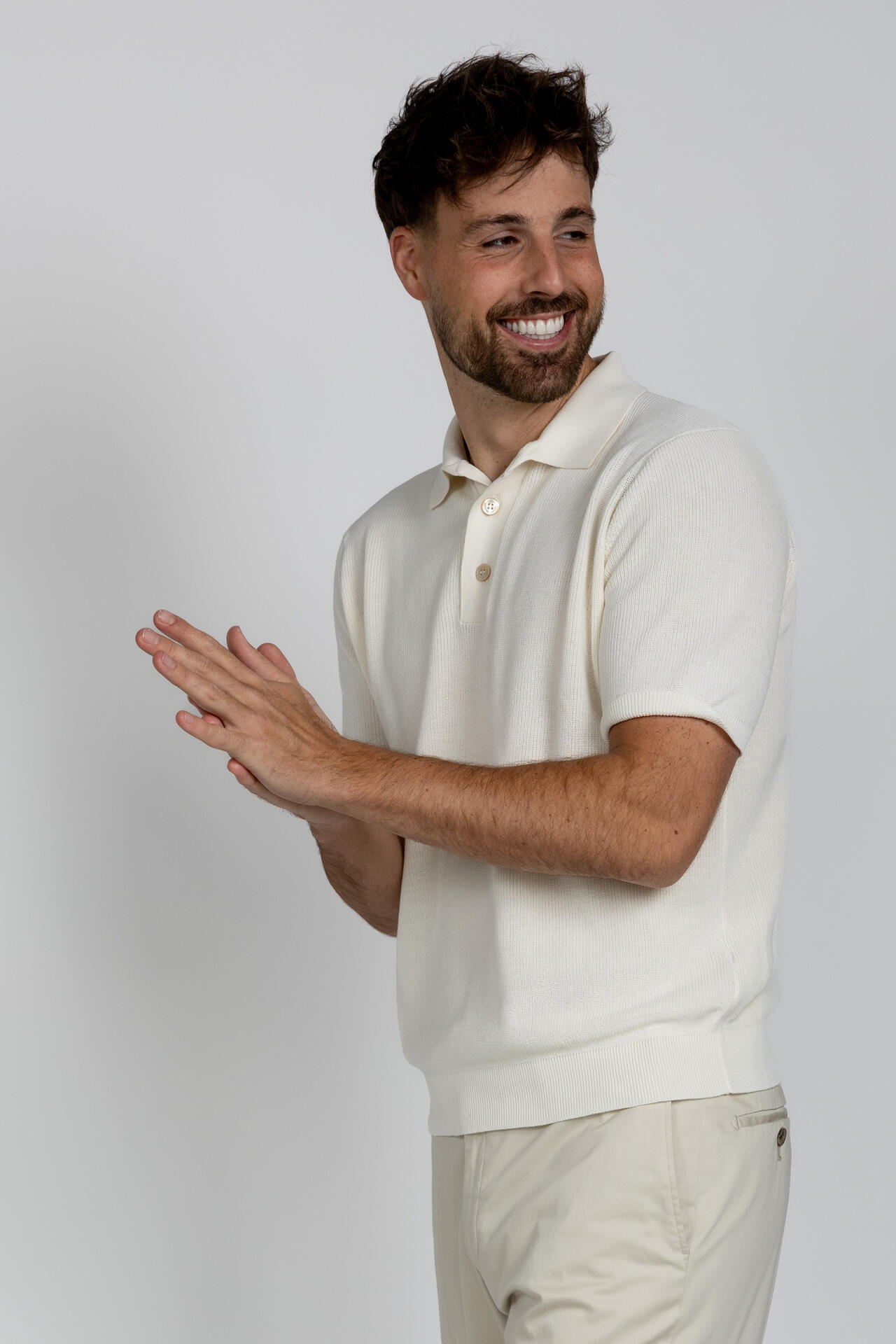 Fijn gebreide katoenen polo met korte mouwen en geribde boorden
