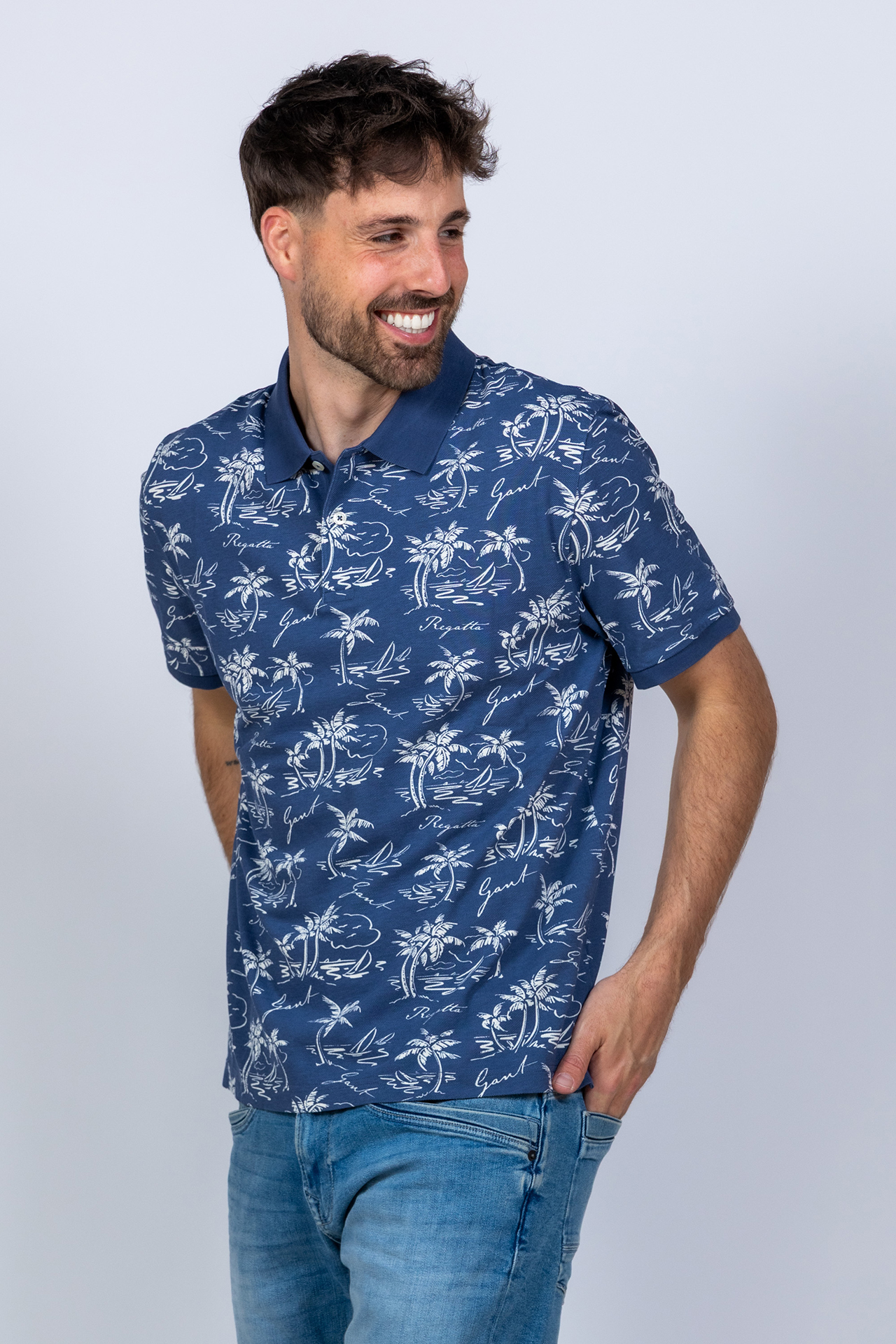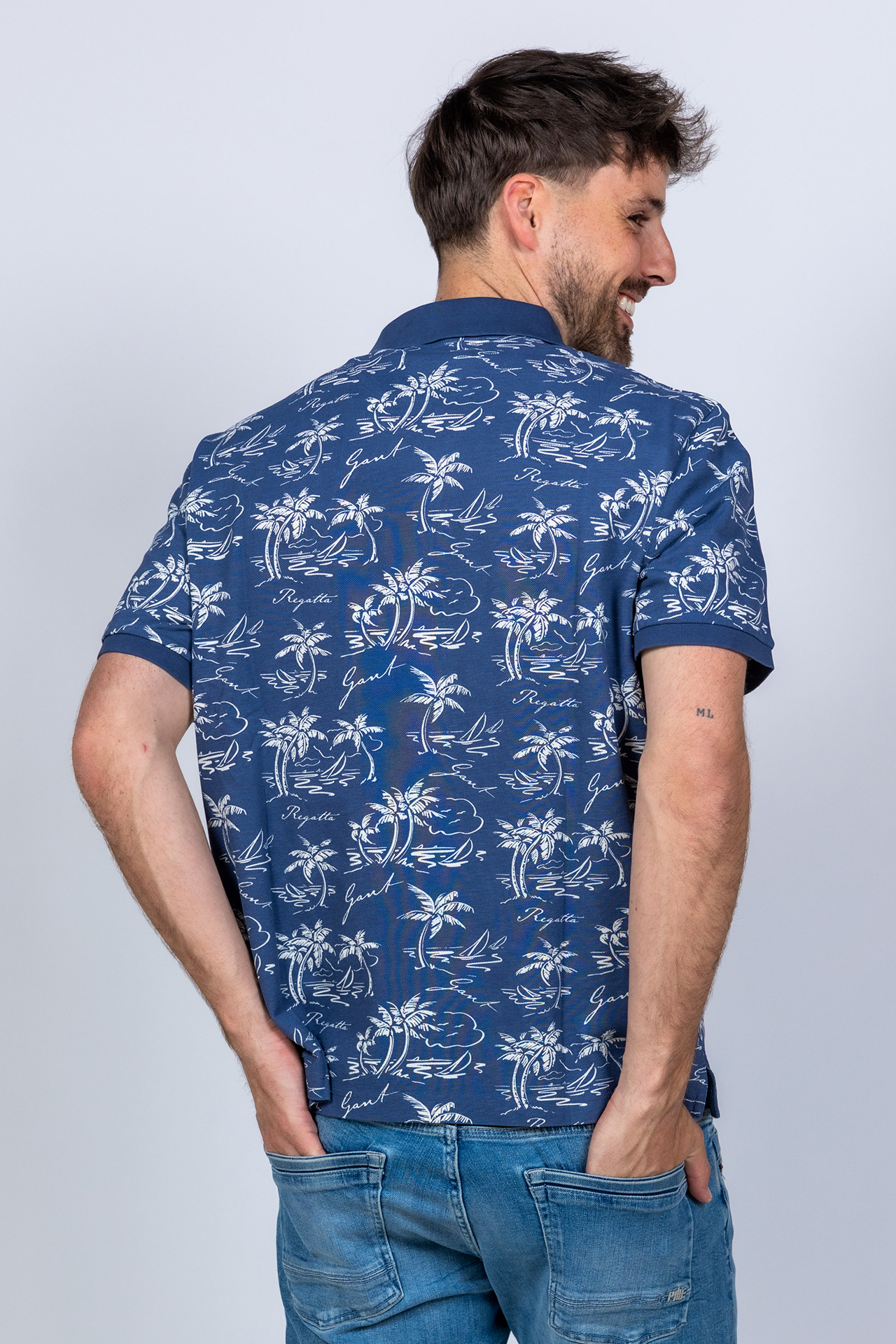 Katoenen polo met korte mouwen, een print met palmbomen, splitjes aan de zijkant en stretch in de stof waardoor hij heerlijk zit