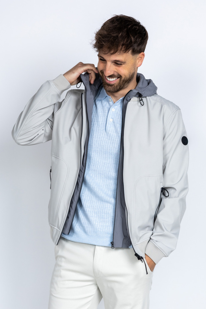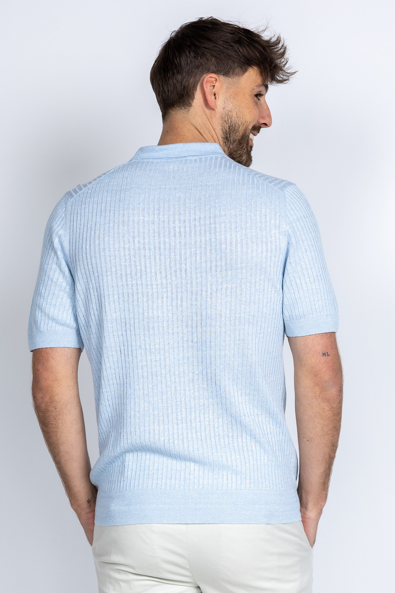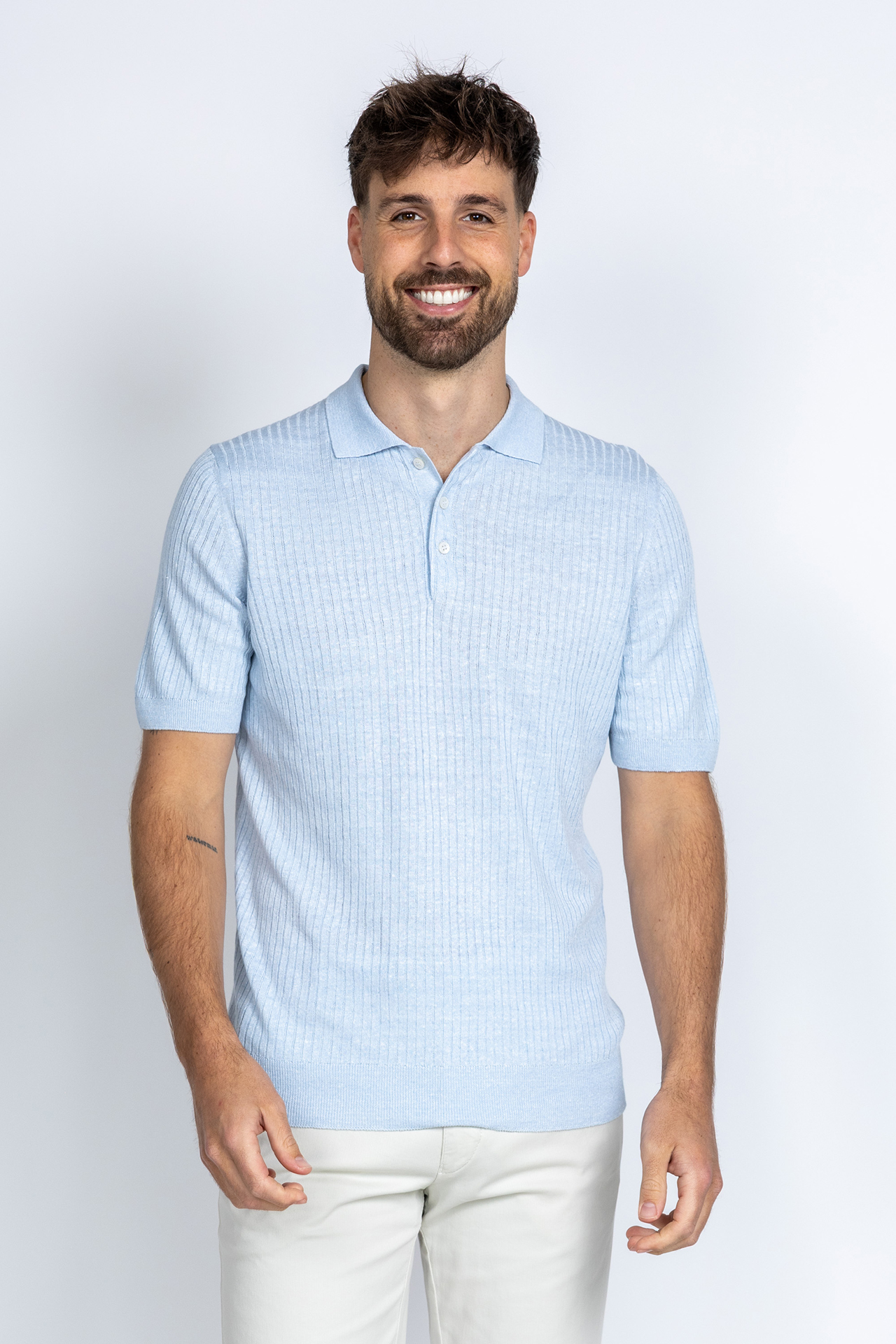 Linnen- en katoenmix polo met een korte mouwen en een gestreepte structuur in de stof