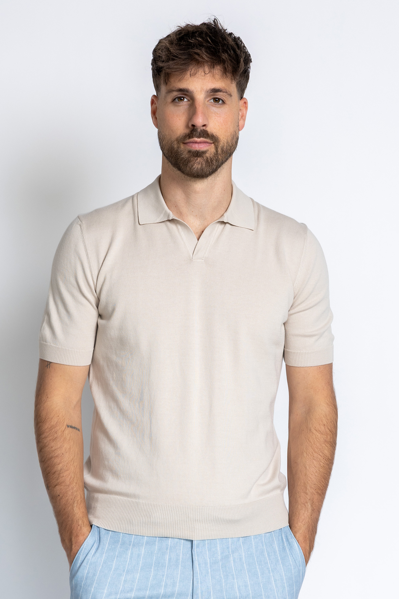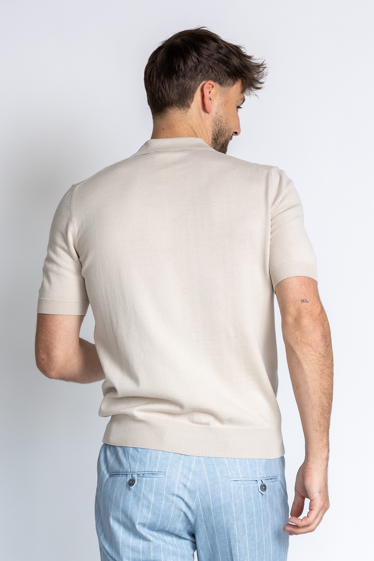 Gebreide katoenen polo met korte mouwen en geribde boorden