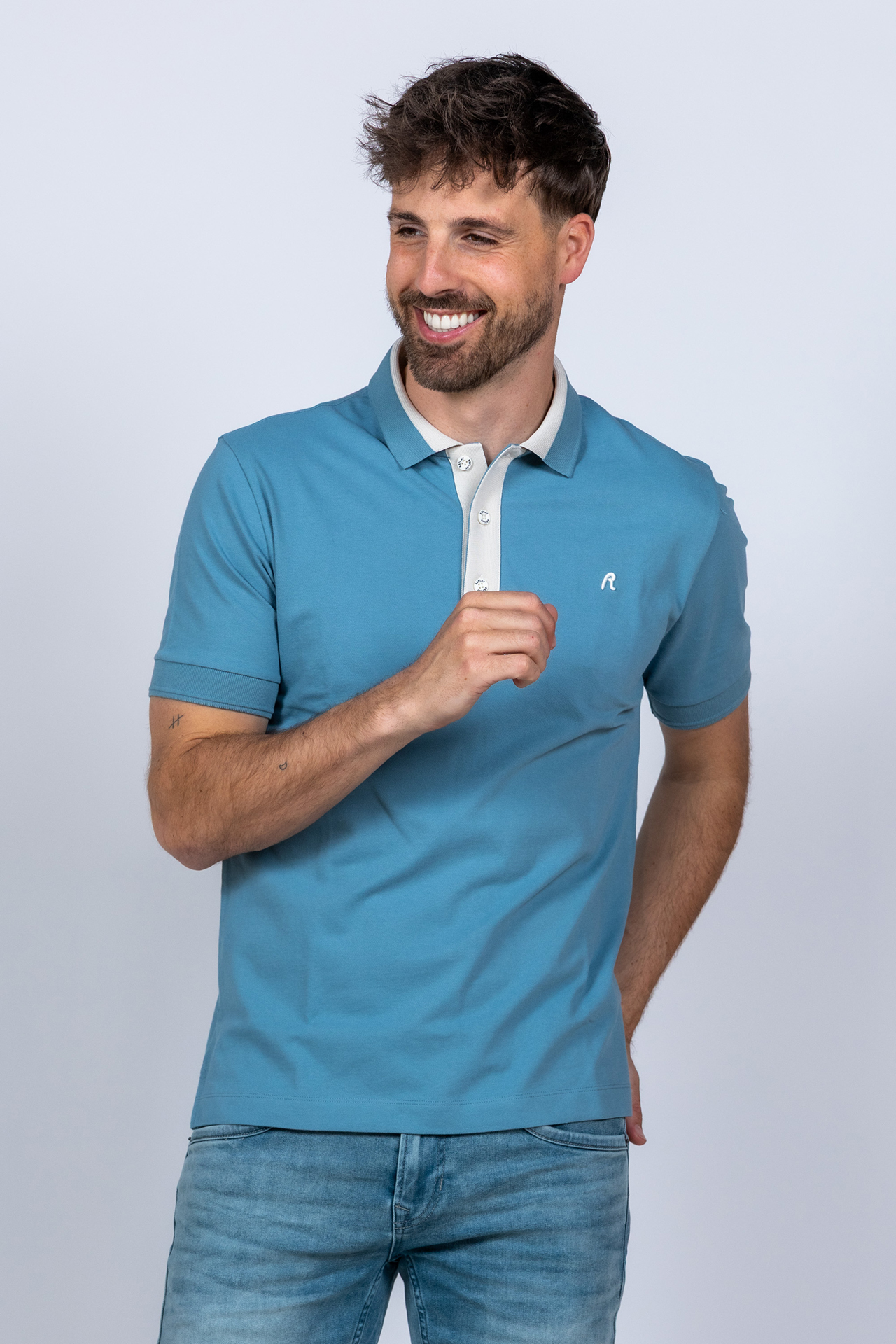 Katoenen polo met korte mouwen, kit kleur details en stretch in de stof waardoor hij comfortabel zit