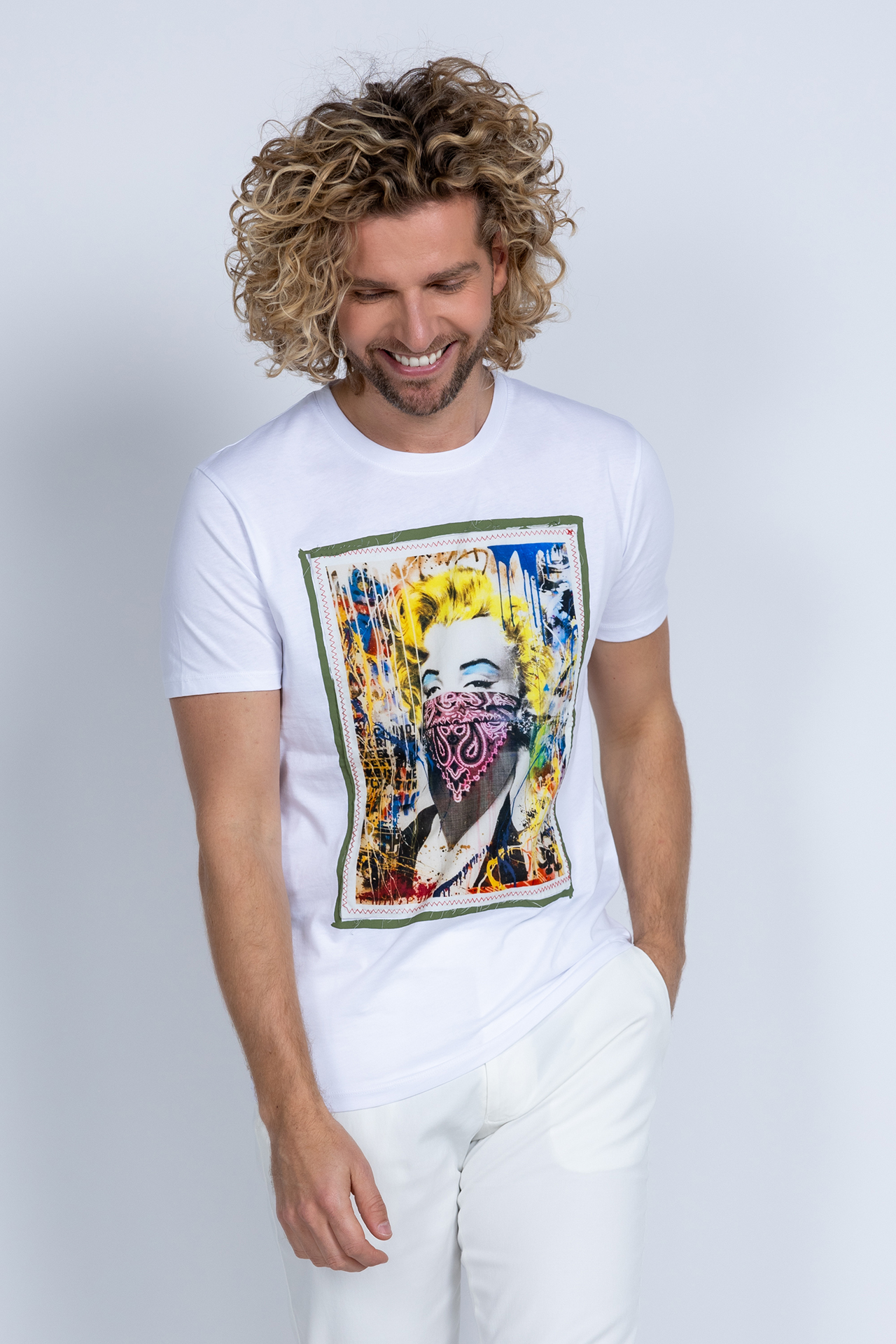 Katoenen t-shirt met korte mouwen, een ronde hals en een print op de voorkant