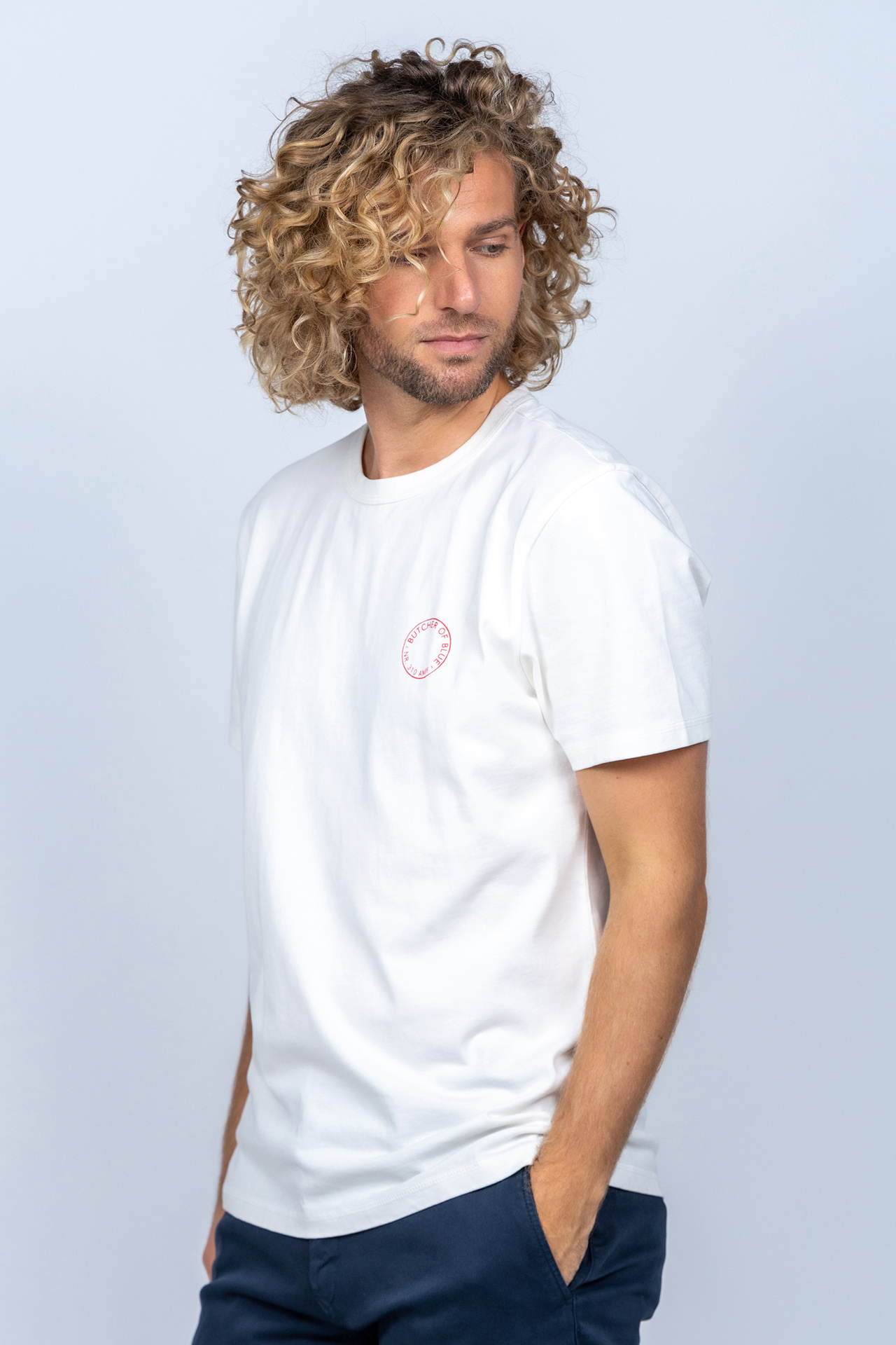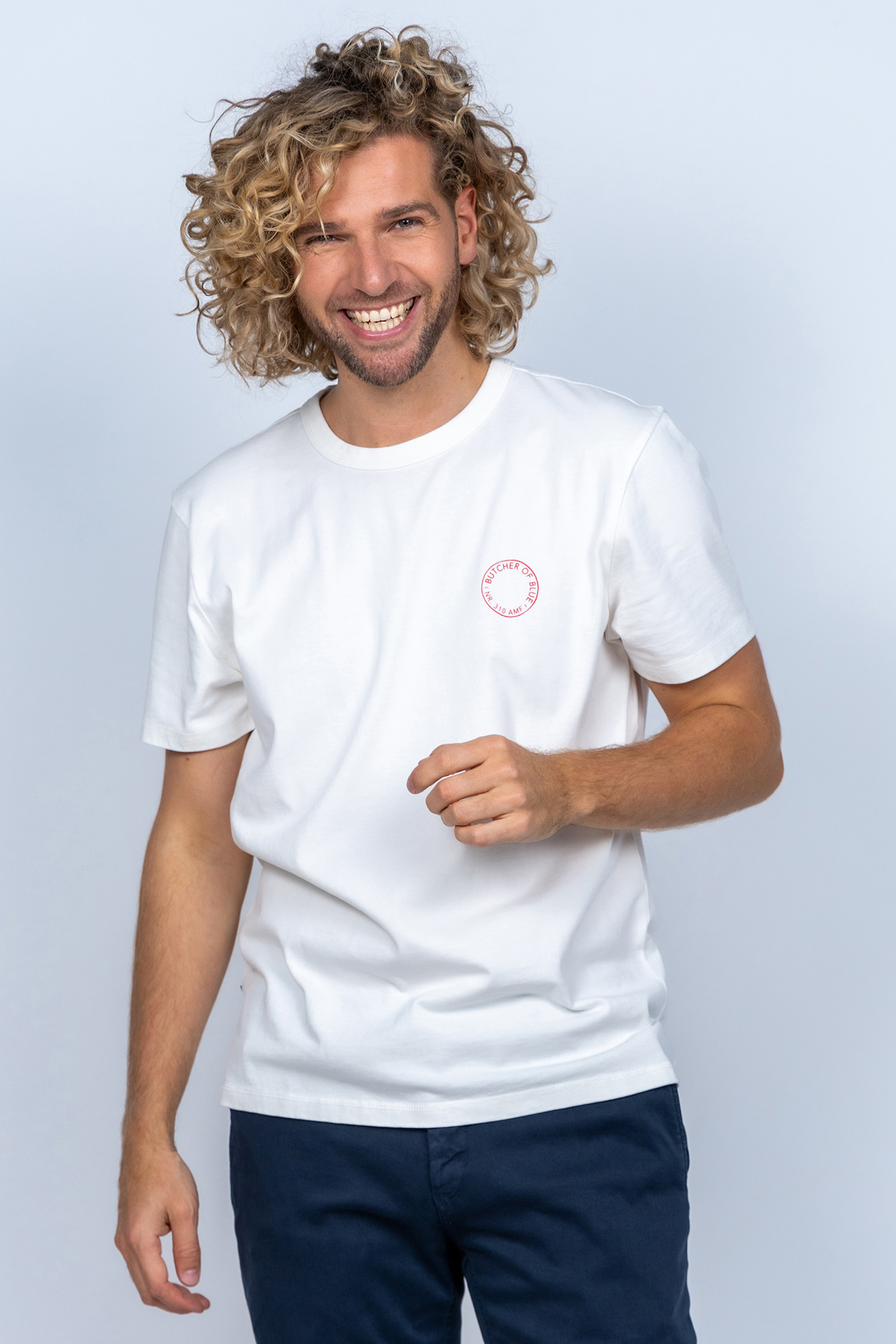 T-shirt met korte mouwen, een ronde hals, het logo op de borst en hij is gemaakt van organisch katoen