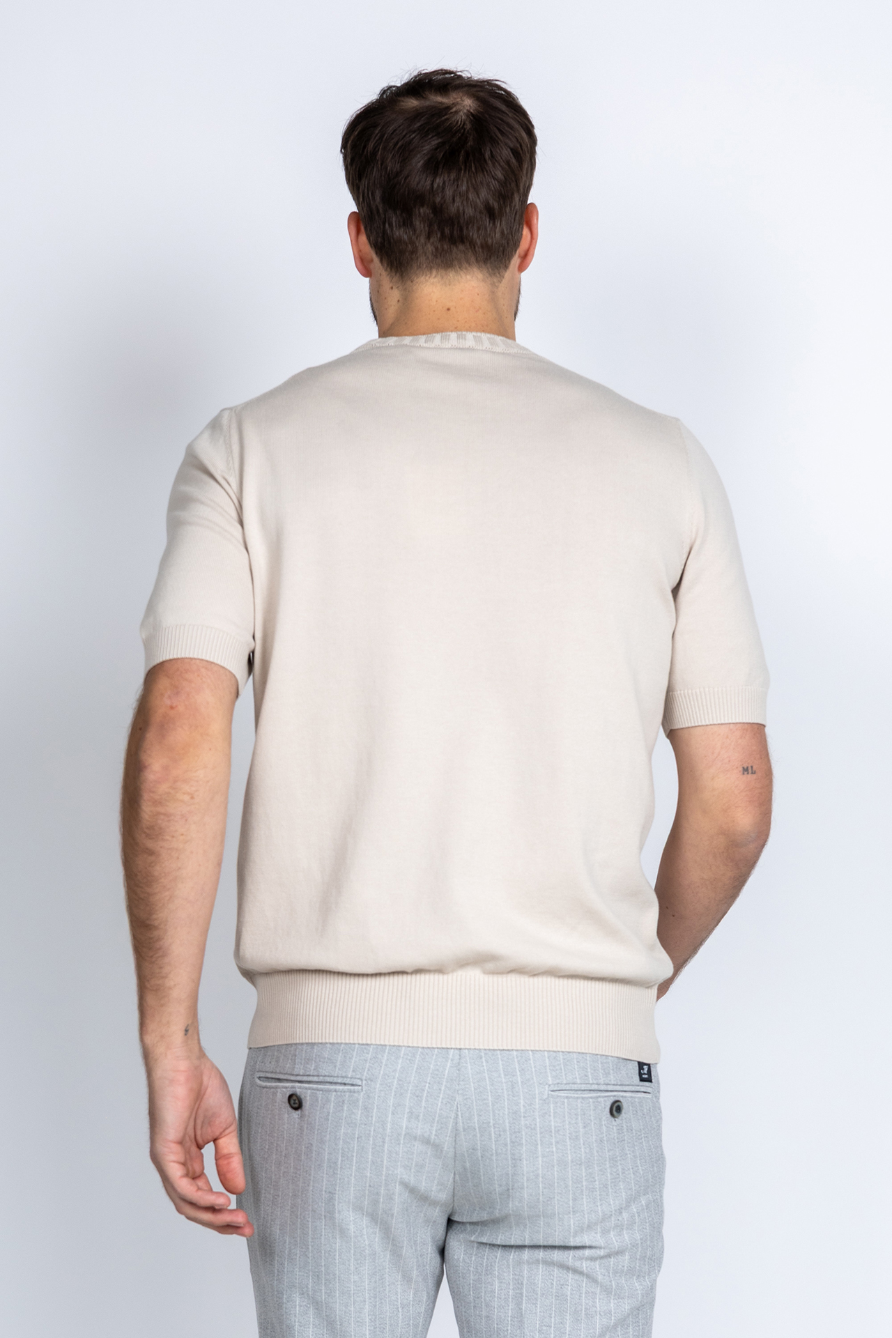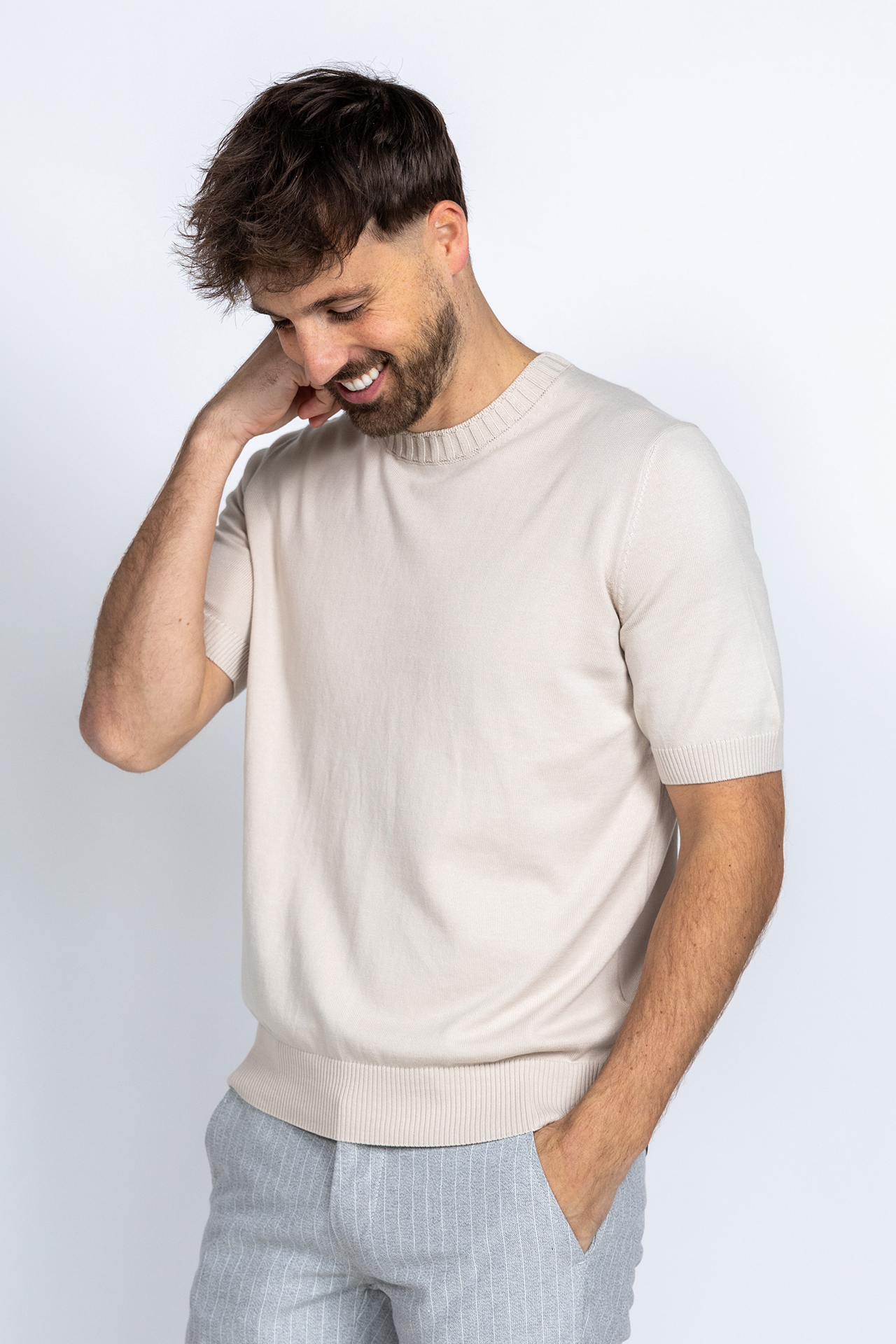 Gebreid katoenen t-shirt met korte mouwen, een ronde hals en geribde boorden