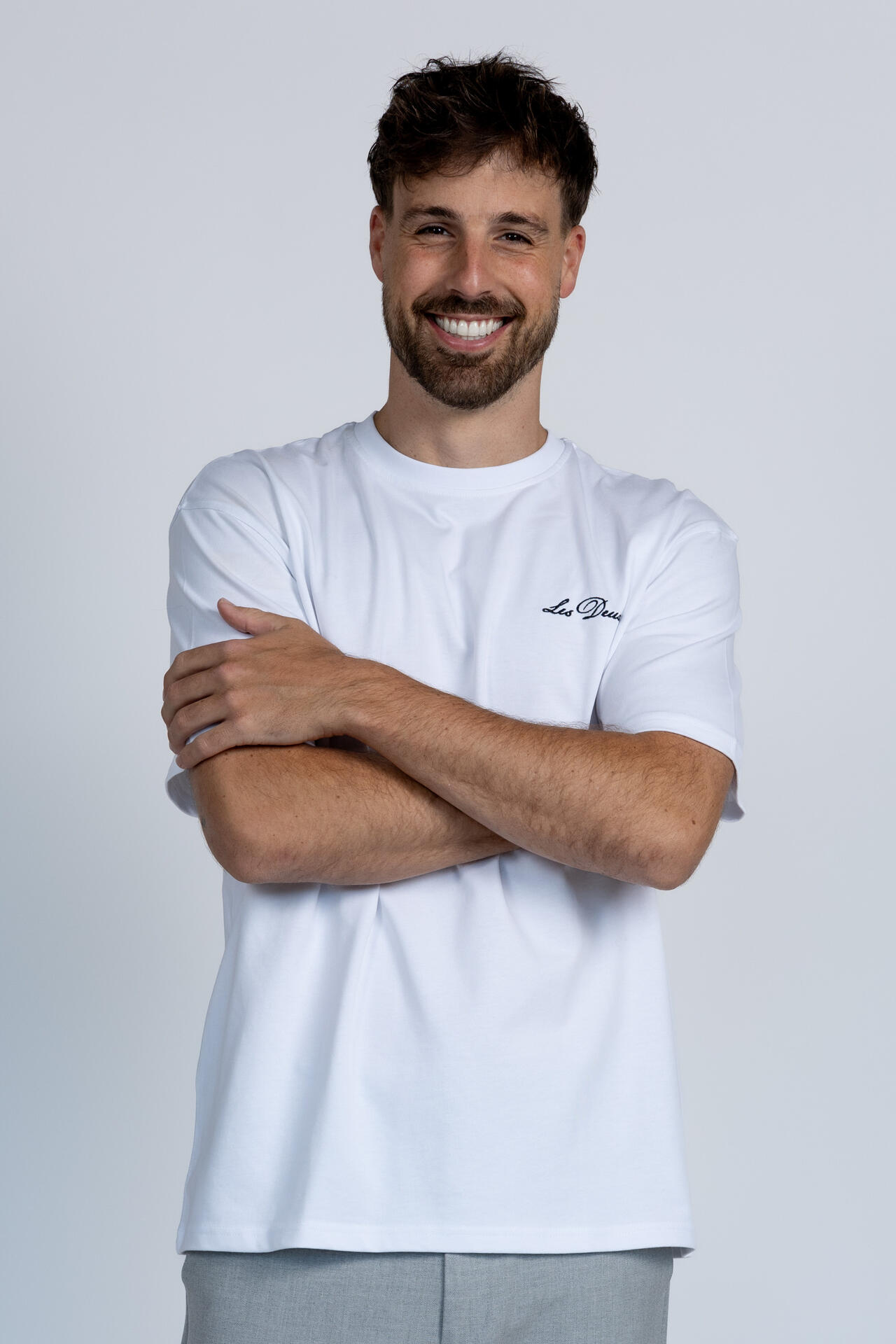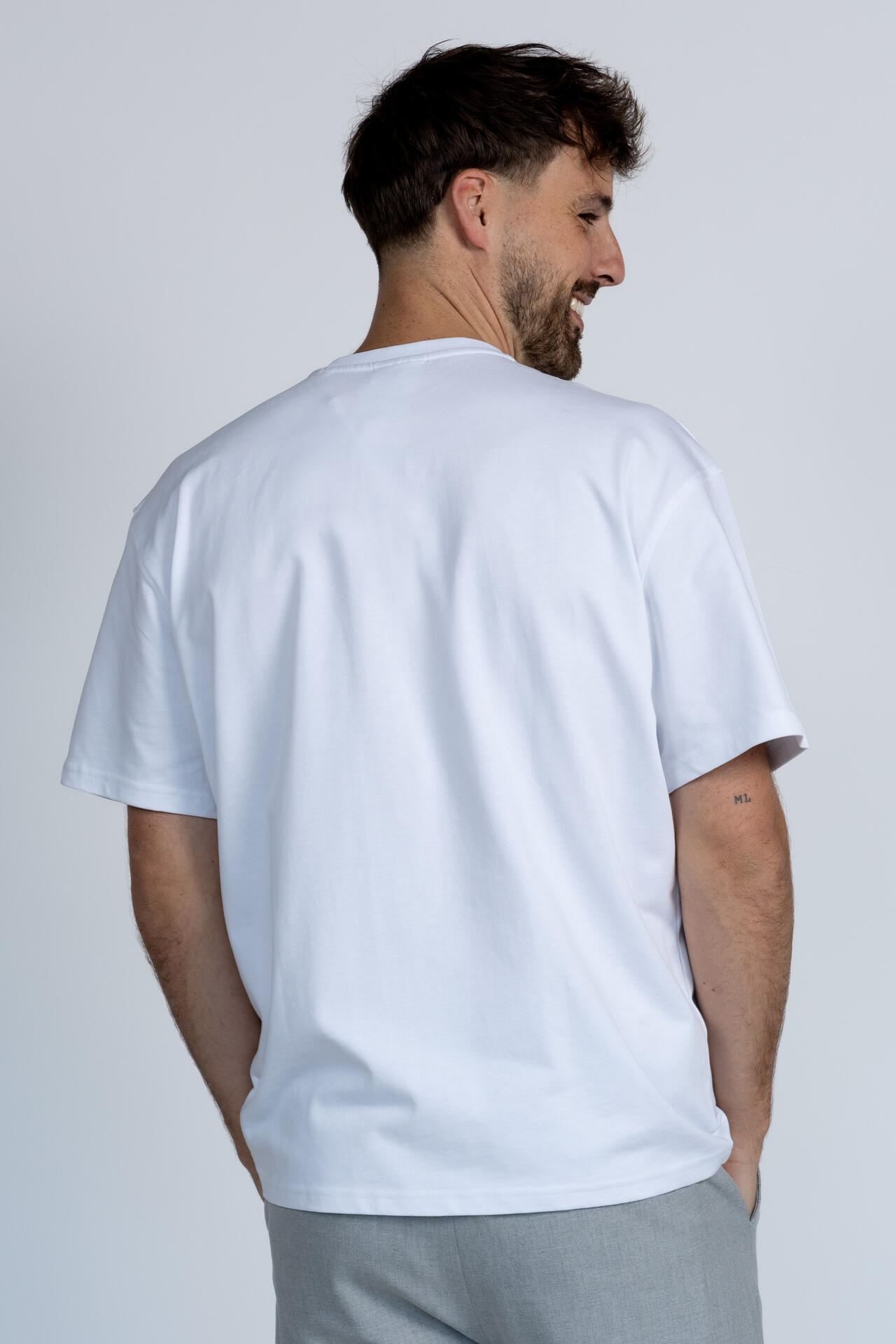 T-shirt met korte mouwen, een ronde hals, het logo op de borst en hij is gemaakt van organisch katoen