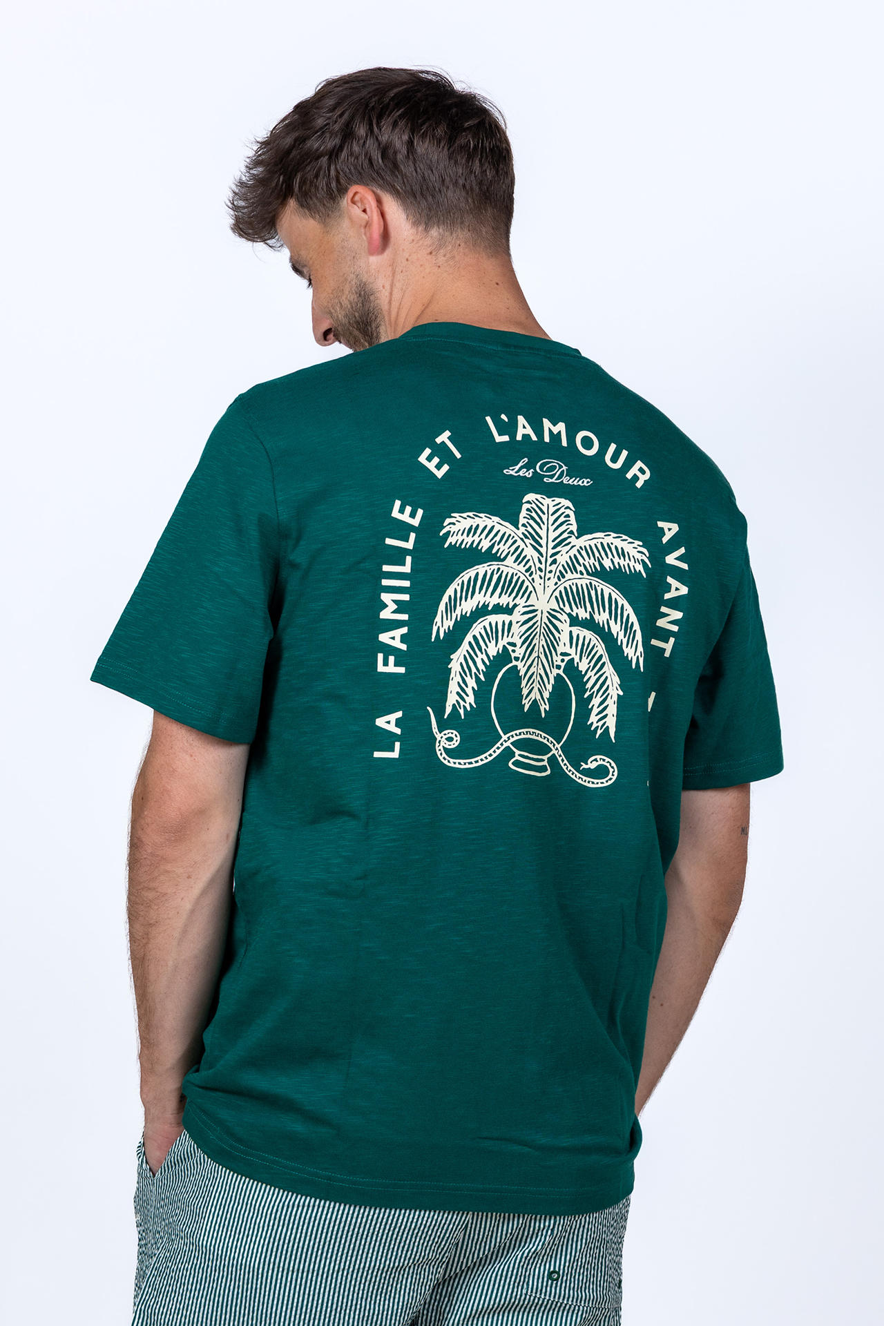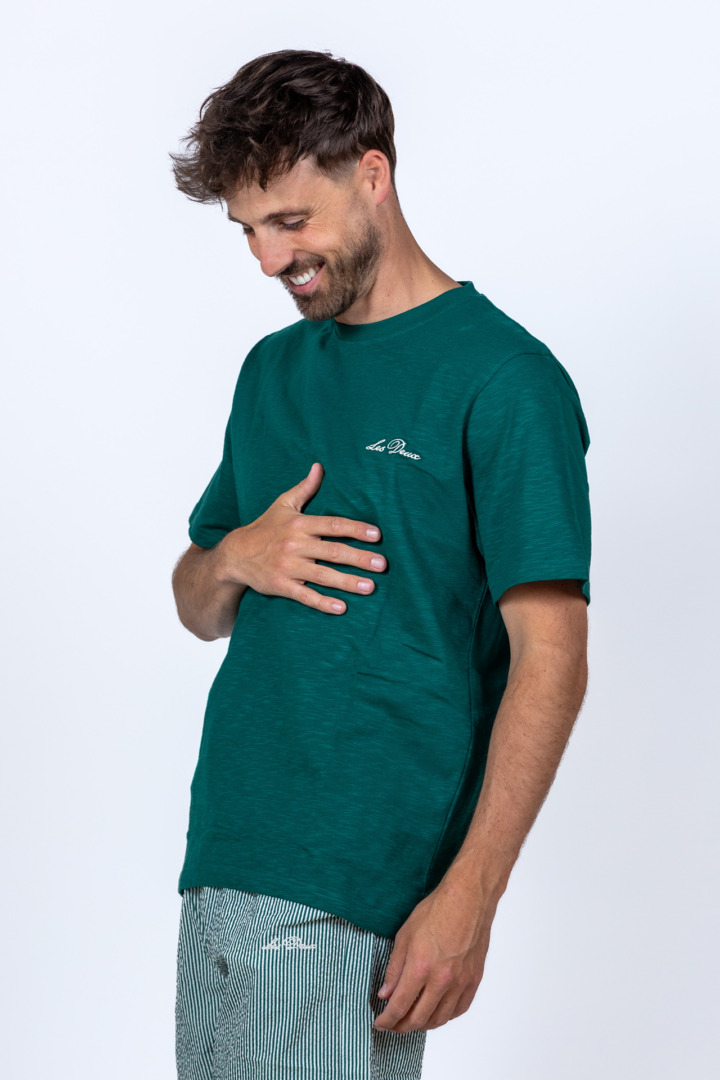 T-shirt met korte mouwen en een ronde hals. Hij heeft het logo op de borst, een opdruk aan de achterkant en hij is gemaakt van organisch katoen