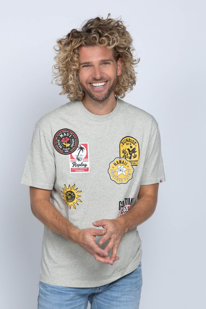 Katoenen t-shirt met applicaties aan de voorkant, een ronde hals en korte mouwen