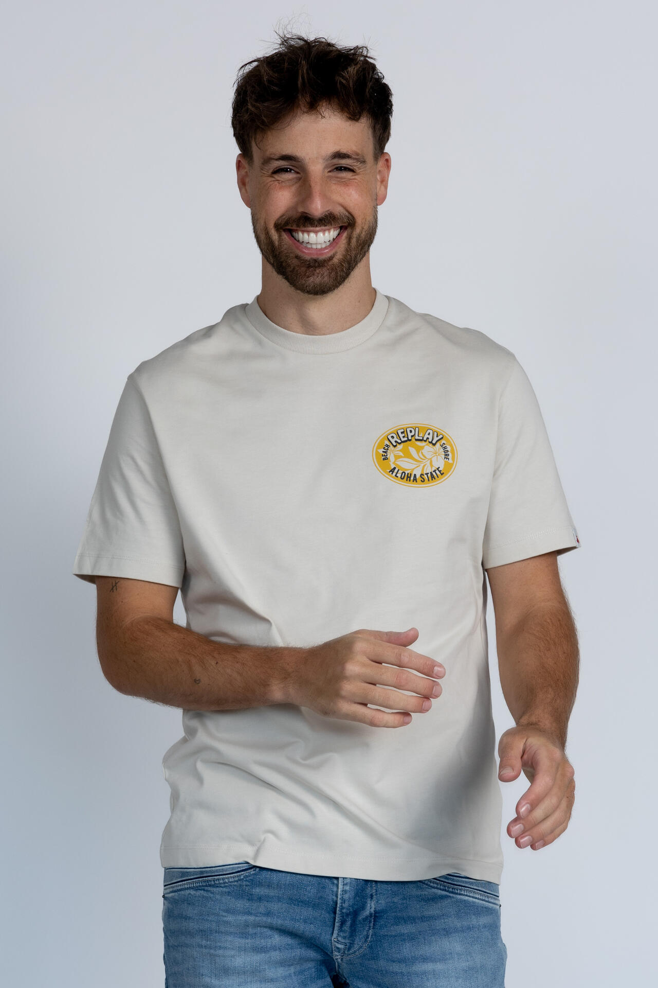 Katoenen t-shirt met korte mouwen, een ronde hals en hij heeft een print op de borst en achterkant
