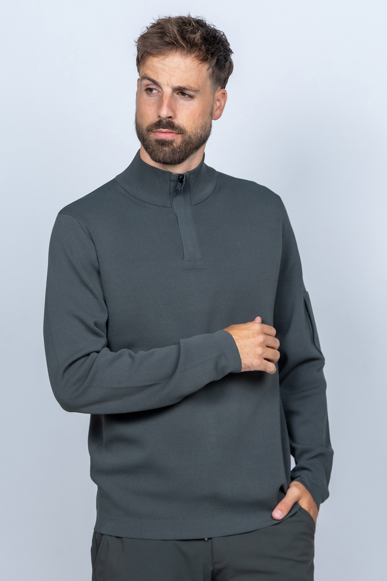 Pullover met opstaande kraag met rits en lange mouwen