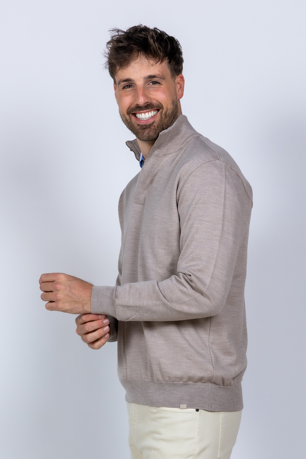 Wollen pullover met lange mouwen en een opstaande kraag met rits