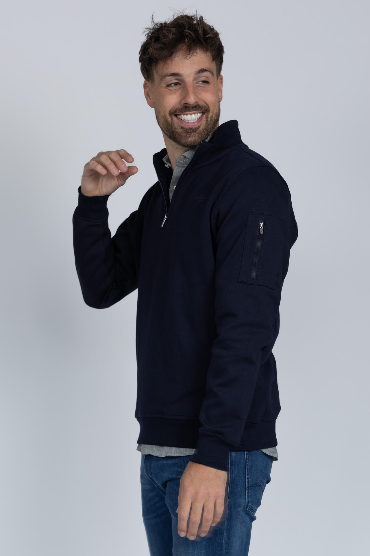 Sweater met een opstaande kraag met rits, steekzakken met rits aan de voorkant en een zakje met rits op de mouw