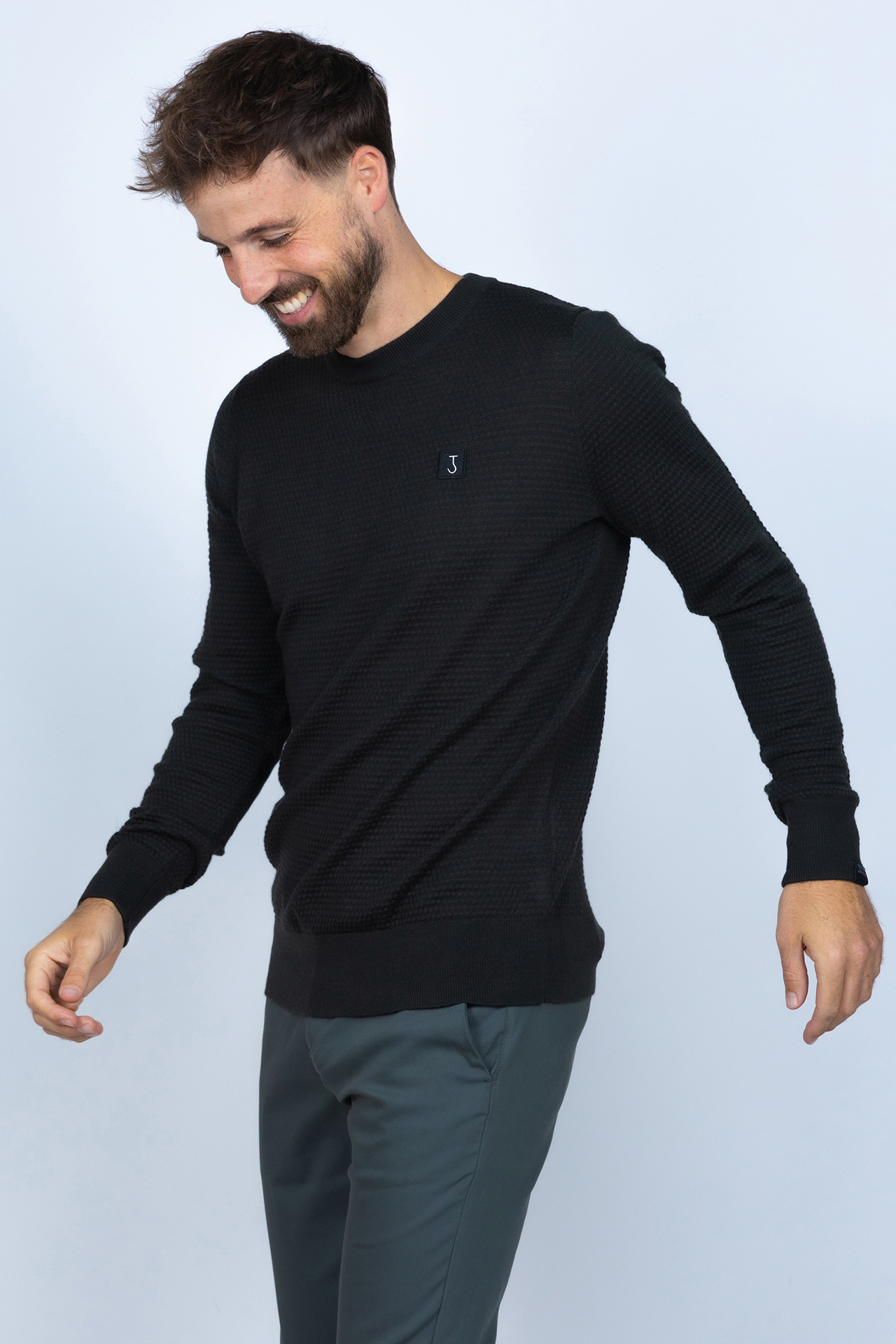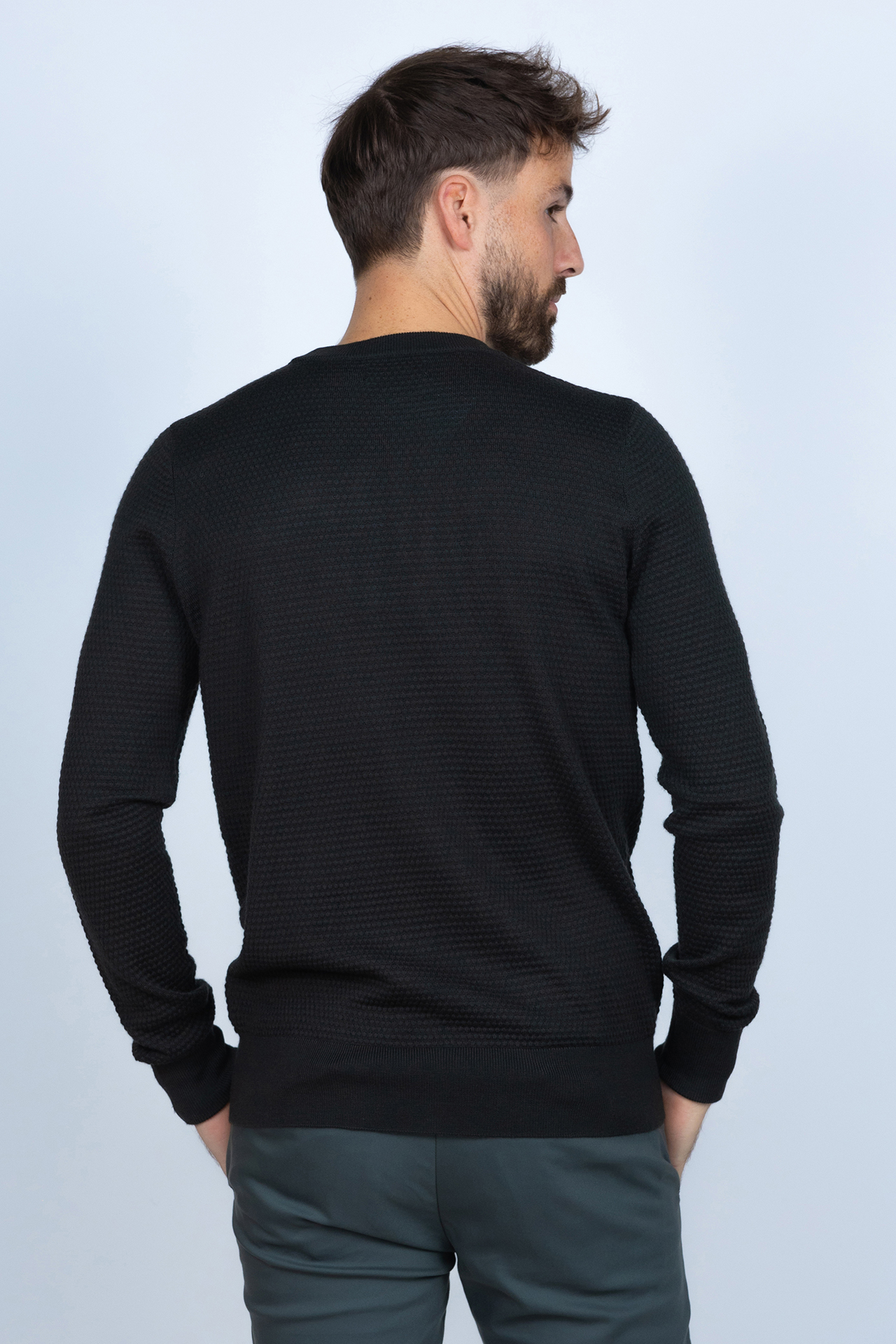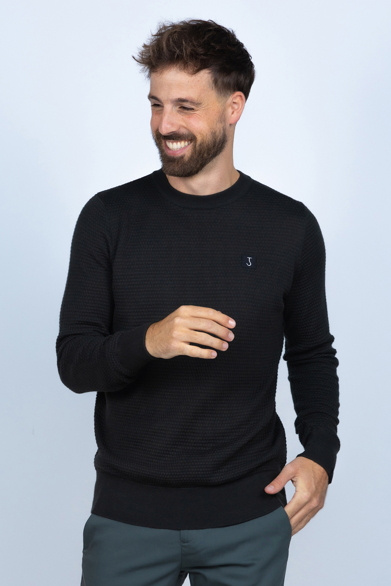 Acryl- en wolmix trui met een ronde hals, reliëf in de stof en het logo op de borst
