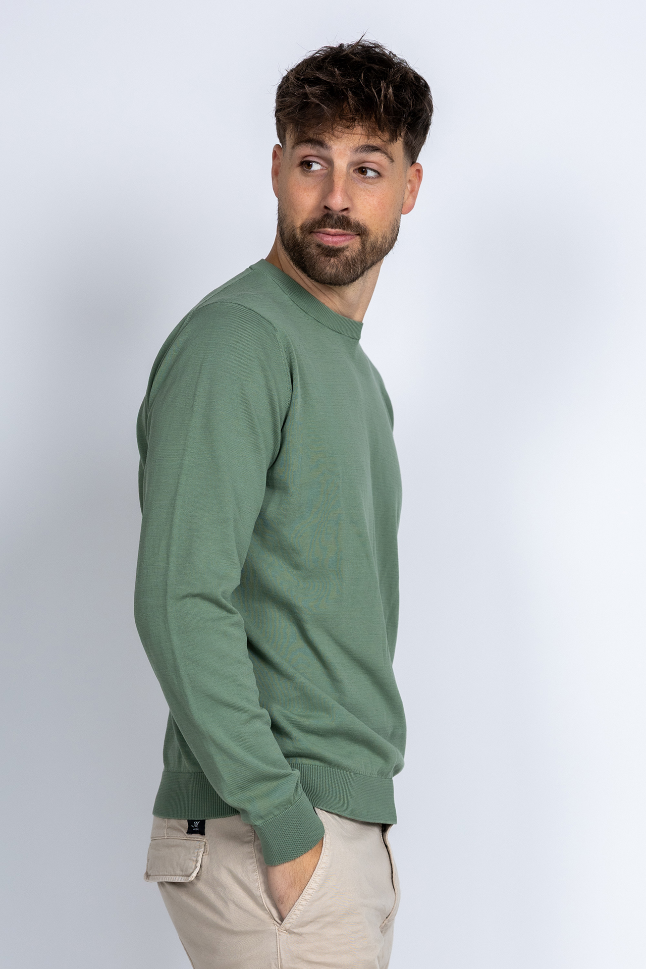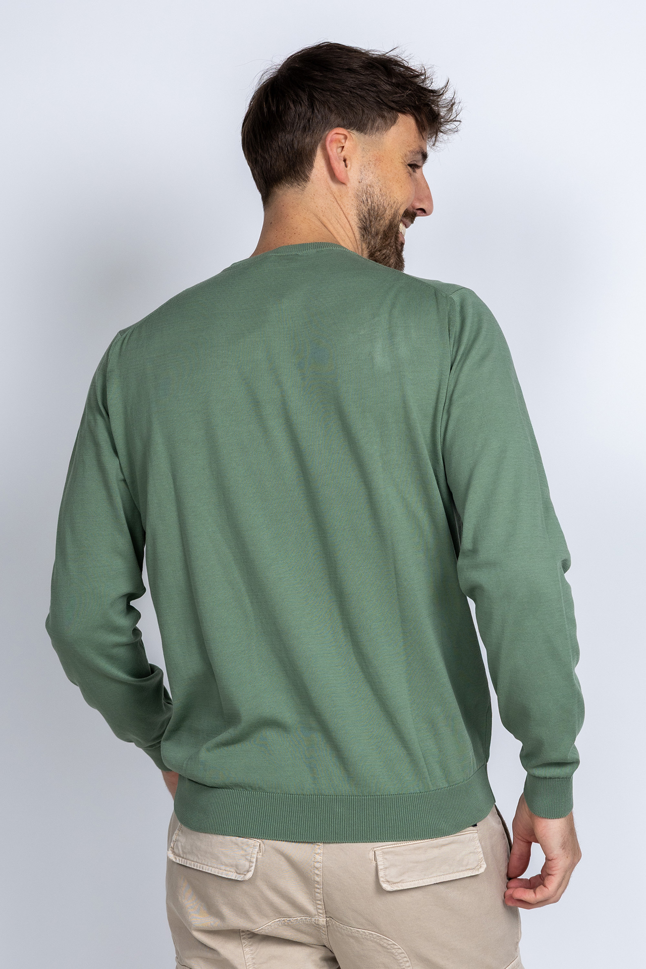 Fijn gebreide katoenen pullover met een ronde hals, lange mouwen en geribde boorden