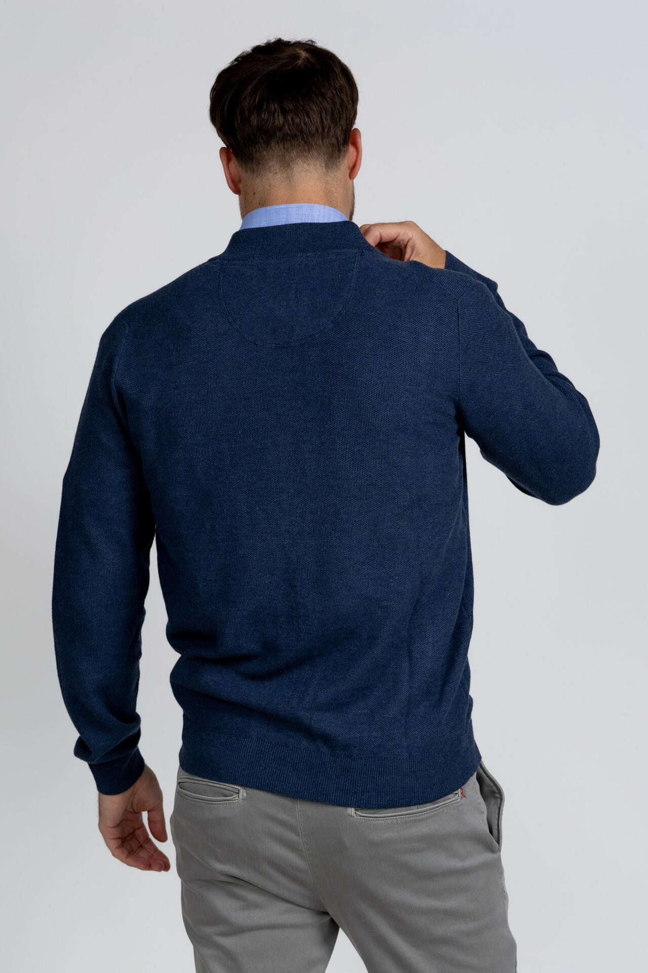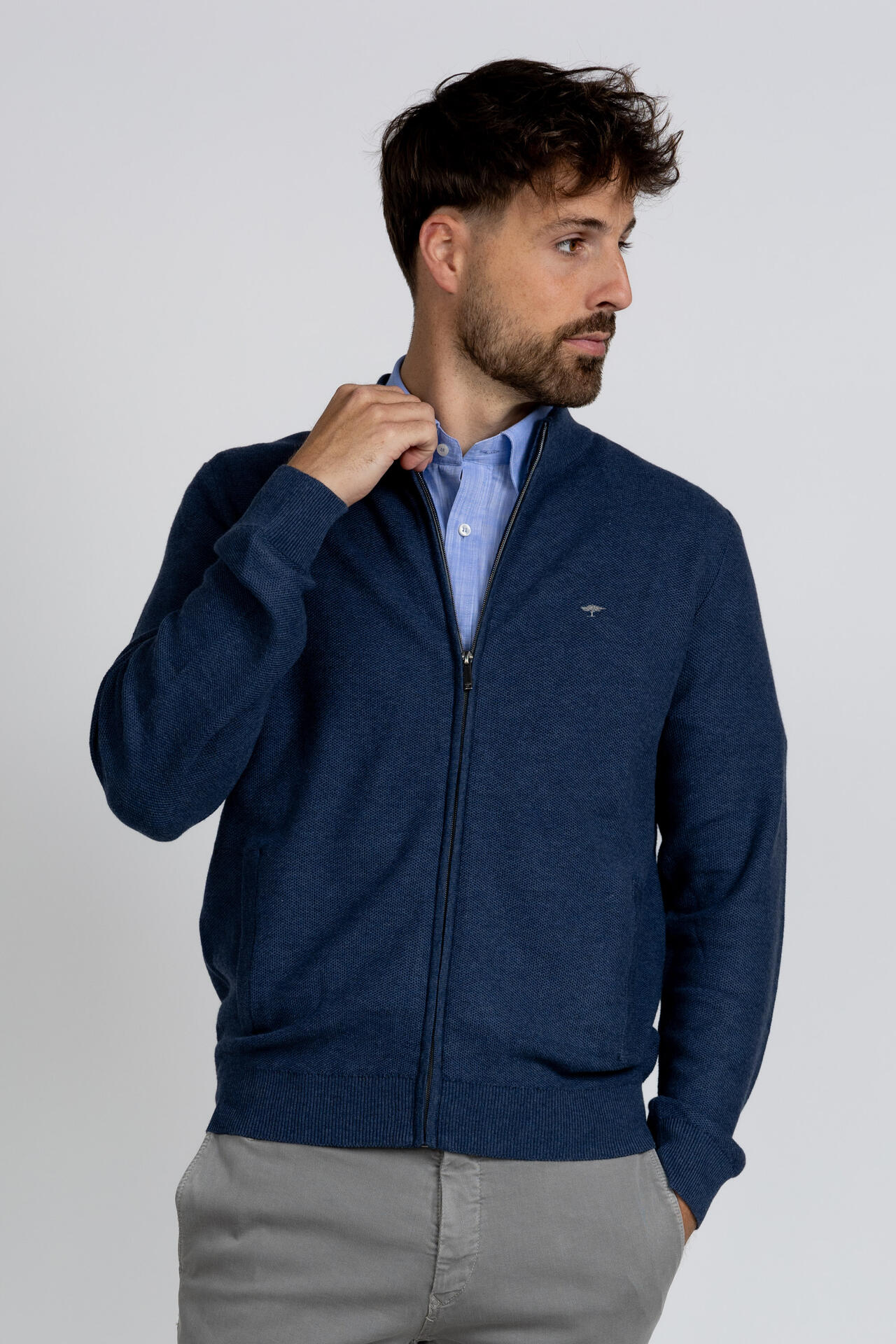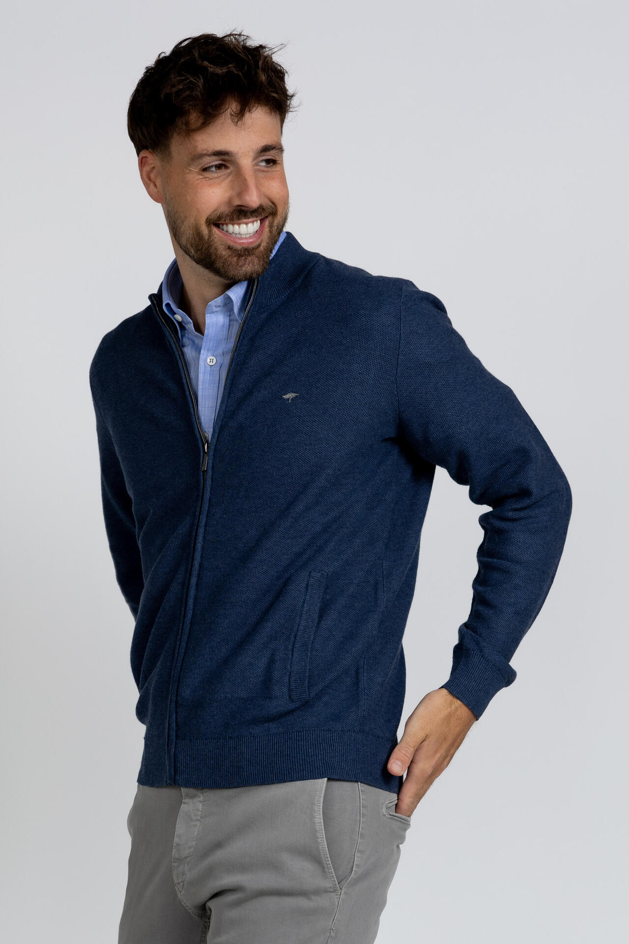 Fijn gebreid katoenen vest met een ritssluiting, steekzakken aan de voorkant en het logo op de borst